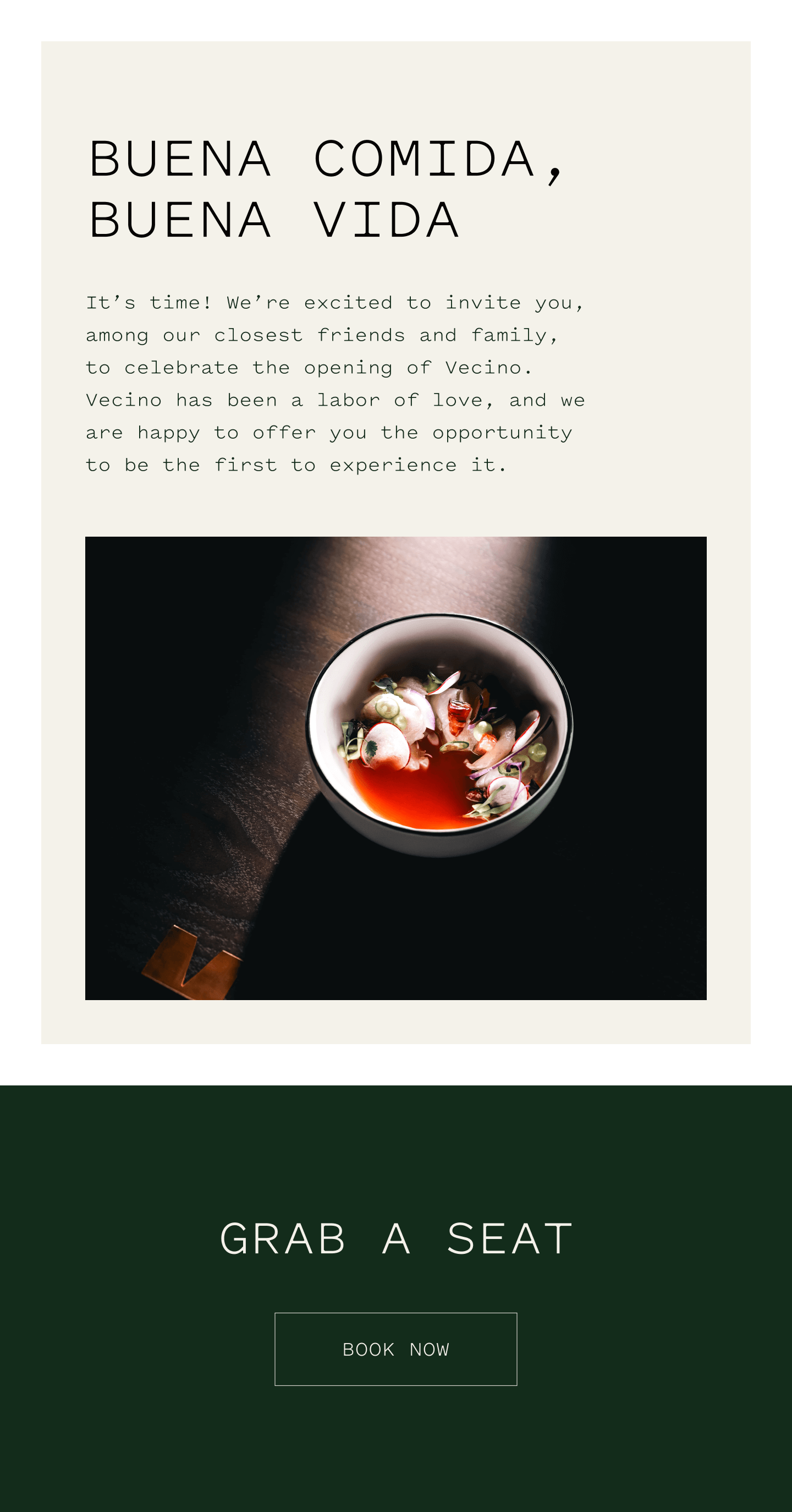 We prioritized cohesion, clarity, and cultural context. Rather than adding noise, the strategy focused on extending Vecino’s brand consistently across web, social, and email, ensuring every touchpoint reinforced the same story. Visual decisions pulled directly from the restaurant’s architecture, interiors, and materiality, bringing the beauty of the physical space into the digital experience.